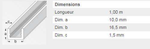 CORNIERE 15,5X1,5MM ALU BLC 1M