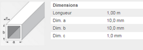 TUBE CARRE 11,5X8MM ALU BLC 1M